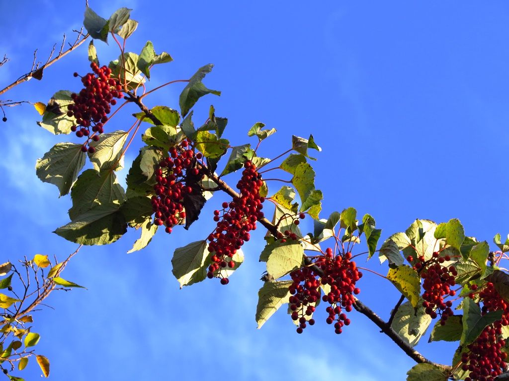 都立蘆花恒春園 11月に入りました 今年も残り2か月ですね 花の丘でイイギリの実が赤くたわわに実り 一部は紫に熟しています 実は食べることもできるそうですが おいしいというものではなく 飾りとして使ったり 景観を楽しむのに適しています